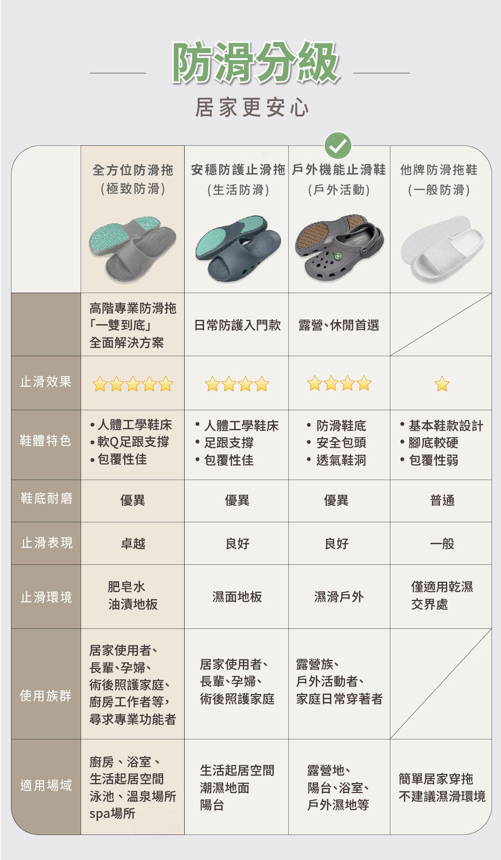 ✅ 怕雨天、浴室地滑?|特殊貼片鞋底,強效防滑